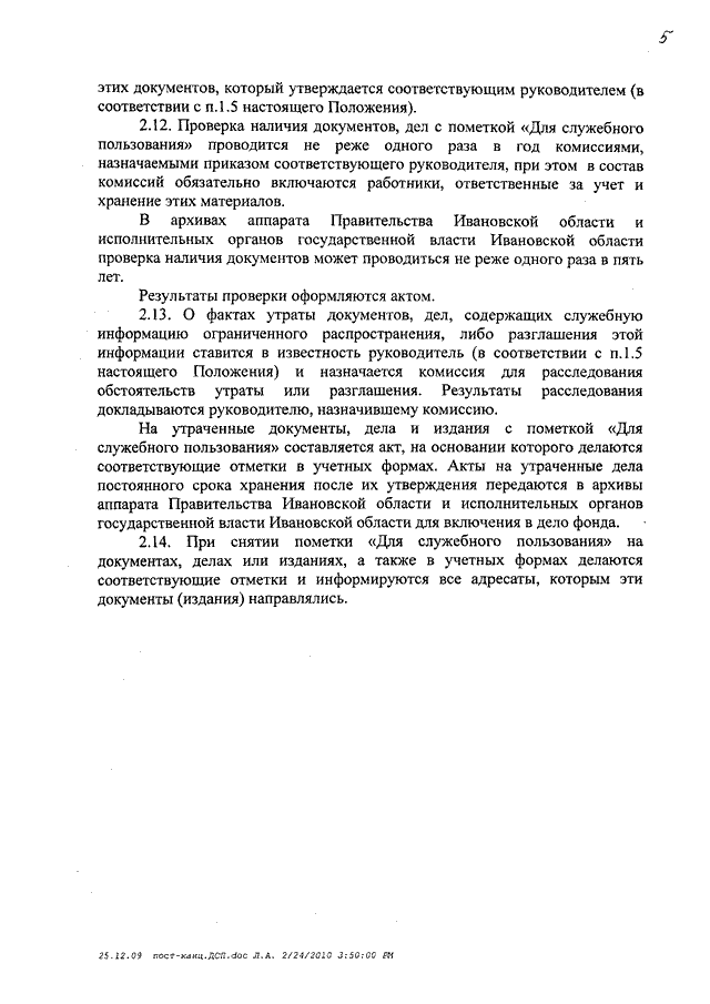 Постановление Правительства Ивановской области от 24.02.2010 N 36-п "Об утверждении Положения о порядке обращения со служебной информацией ограниченного распространения в Правительстве Ивановской области и исполнительных органах государственной власти Ивановской области"