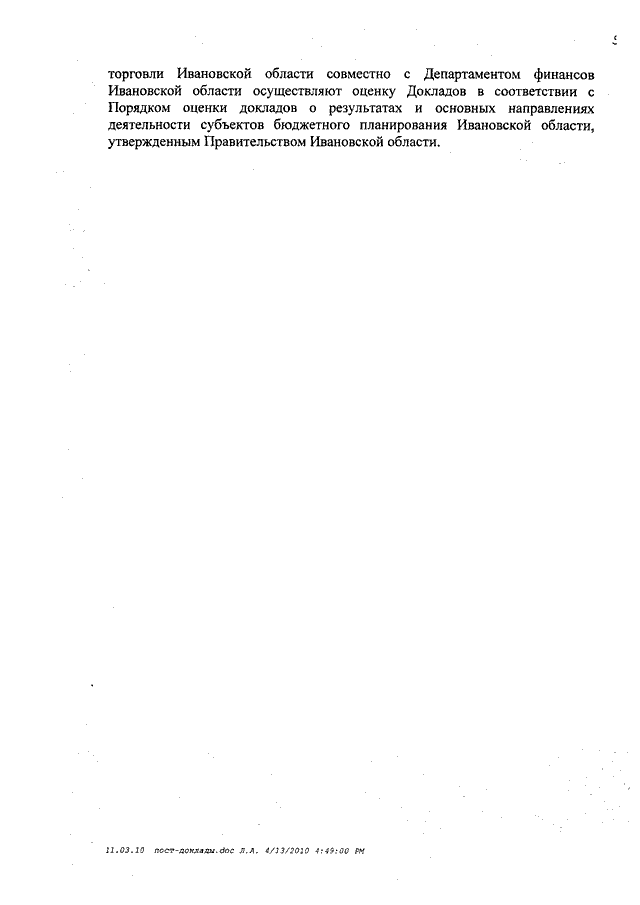 Постановление Правительства Ивановской области от 22.04.2010 N 116-п "О докладах о результатах и основных направлениях деятельности субъектов бюджетного планирования Ивановской области" (вместе с "Положением о докладах о результатах и основных направлениях деятельности субъектов бюджетного планирования Ивановской области", "Порядком оценки докладов о результатах и основных направлениях деятельности субъектов бюджетного планирования Ивановской области")