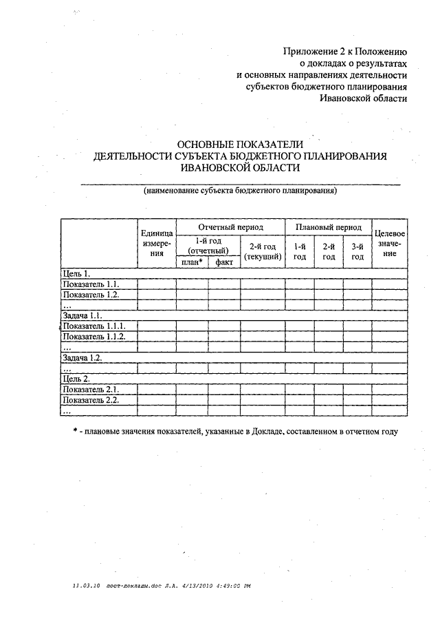 Постановление Правительства Ивановской области от 22.04.2010 N 116-п "О докладах о результатах и основных направлениях деятельности субъектов бюджетного планирования Ивановской области" (вместе с "Положением о докладах о результатах и основных направлениях деятельности субъектов бюджетного планирования Ивановской области", "Порядком оценки докладов о результатах и основных направлениях деятельности субъектов бюджетного планирования Ивановской области")
