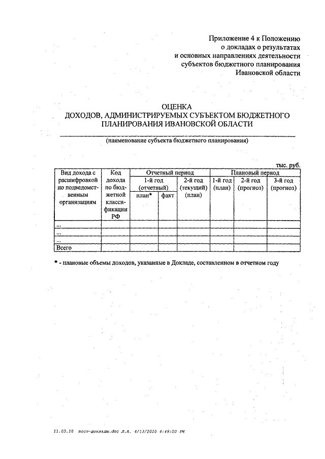 Постановление Правительства Ивановской области от 22.04.2010 N 116-п "О докладах о результатах и основных направлениях деятельности субъектов бюджетного планирования Ивановской области" (вместе с "Положением о докладах о результатах и основных направлениях деятельности субъектов бюджетного планирования Ивановской области", "Порядком оценки докладов о результатах и основных направлениях деятельности субъектов бюджетного планирования Ивановской области")