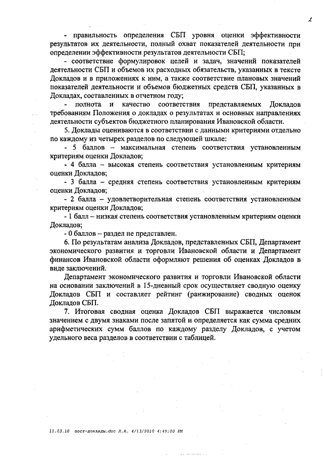 Постановление Правительства Ивановской области от 22.04.2010 N 116-п "О докладах о результатах и основных направлениях деятельности субъектов бюджетного планирования Ивановской области" (вместе с "Положением о докладах о результатах и основных направлениях деятельности субъектов бюджетного планирования Ивановской области", "Порядком оценки докладов о результатах и основных направлениях деятельности субъектов бюджетного планирования Ивановской области")
