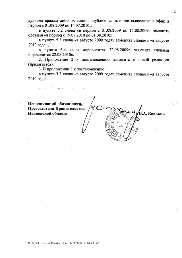 Постановление Правительства Ивановской области от 12.05.2010 N 138-п "О внесении изменений в постановление Правительства Ивановской области от 30.06.2009 N 185-п "Об областном конкурсе среди средств массовой информации на лучший материал, посвященный популяризации государственных символов России и Ивановской области"