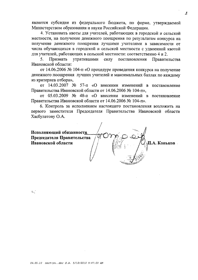Постановление Правительства Ивановской области от 12.05.2010 N 145-п "Об организации и проведении конкурса на получение денежного поощрения лучшими учителями в Ивановской области"