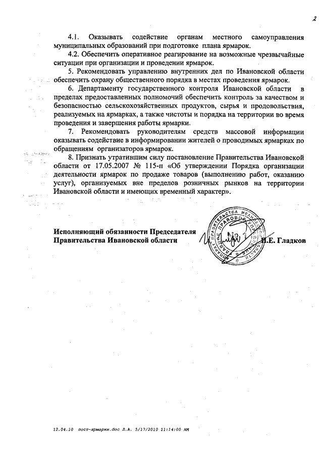 Постановление Правительства Ивановской области от 17.05.2010 N 147-п "Об утверждении Порядка организации ярмарок и продажи товаров на них на территории Ивановской области"