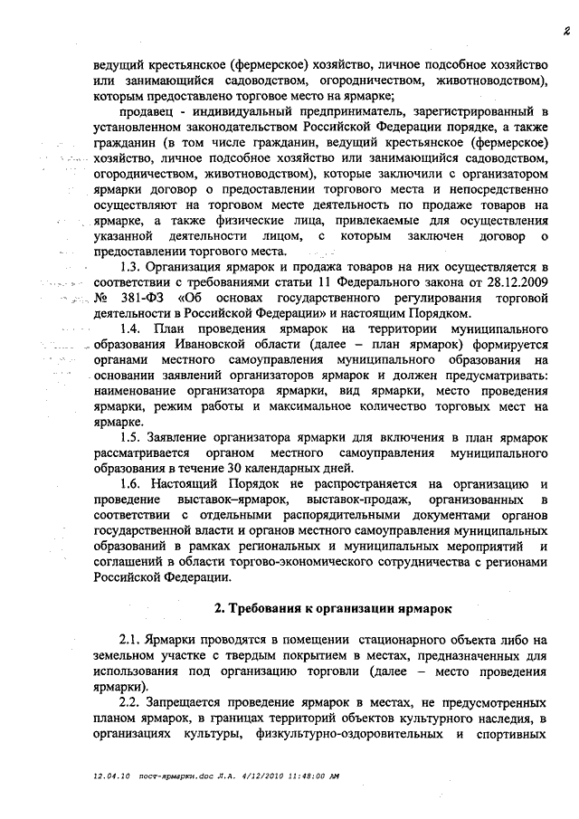 Постановление Правительства Ивановской области от 17.05.2010 N 147-п "Об утверждении Порядка организации ярмарок и продажи товаров на них на территории Ивановской области"