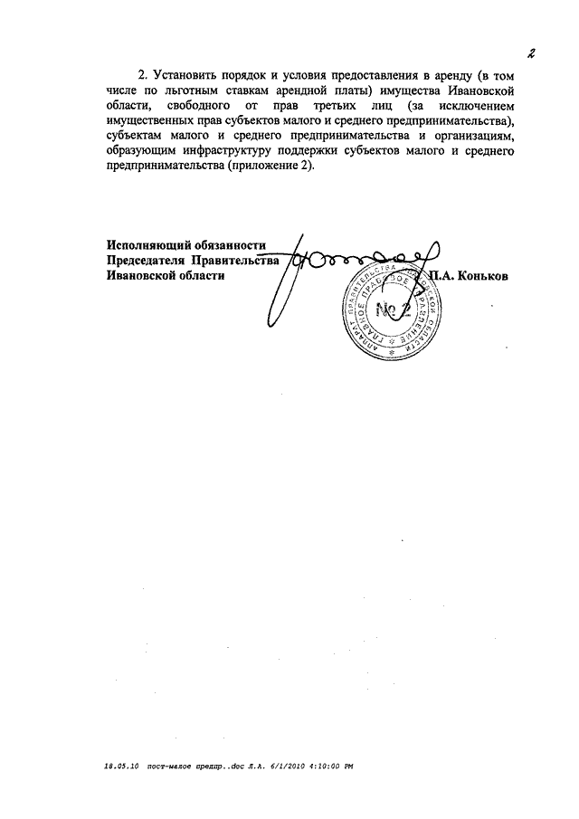 Постановление Правительства Ивановской области от 02.06.2010 N 181-п "О Порядке формирования, ведения, обязательного опубликования перечня имущества Ивановской области, свободного от прав третьих лиц (за исключением имущественных прав субъектов малого и среднего предпринимательства), предназначенного для предоставления его во владение и (или) пользование на долгосрочной основе (в том числе по льготным ставкам арендной платы) субъектам малого и среднего предпринимательства и организациям, образующим инфраструктуру поддержки субъектов малого и среднего предпринимательства, а также порядке и условиях предоставления указанного имущества в аренду (в том числе по льготным ставкам арендной платы) субъектам малого и среднего предпринимательства"