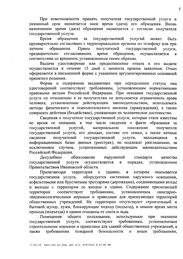 Постановление Правительства Ивановской области от 02.06.2010 N 182-п "Об утверждении стандартов качества государственных услуг Ивановской области в сфере социальной защиты населения" (вместе со "Стандартом качества государственной услуги Ивановской области "Организация предоставления компенсационных выплат гражданам, которым причинен ущерб на финансовом и фондовом рынках Ивановской области", "Стандартом качества государственной услуги "Организация дополнительного пенсионного обеспечения отдельных категорий граждан", "Стандартом качества государственной услуги Ивановской области "Погребение отдельных категорий умерших (которые не работали и не являлись пенсионерами, а также детей, родившихся мертвыми по истечении 196 дней беременности) при отсутствии лиц, взявших на себя обязательства по погребению", "Стандартом качества государственной услуги Ивановской области "Организация социальной работы с семьями и детьми", "Стандартом качества государственной услуги Ивановской области "Содержание, воспитание и начальное профессиональное образование инвалидов и лиц, страдающих хроническими формами заболеваний, в стационарных и полустационарных условиях", "Стандартом качества государственной услуги Ивановской области "Адресная социальная помощь отдельным категориям граждан", "Стандартом качества государственной услуги Ивановской области "Социальное обслуживание граждан пожилого возраста, инвалидов и детей, страдающих хроническими формами заболеваний, в стационарных и полустационарных условиях", "Стандартом качества государственной услуги Ивановской области "Социальное обслуживание лиц без определенного места жительства и занятий в стационарных и полустационарных условиях", "Стандартом качества государственной услуги Ивановской области "Социальное обслуживание граждан пожилого возраста и инвалидов на дому", "Стандартом качества государственной услуги Ивановской области "Временное содержание и социальная реабилитация несовершеннолетних, находящихся в трудной жизненной ситуации", "Стандартом качества государственной услуги Ивановской области "Выдача социальной карты жителя Ивановской области", "Стандартом качества государственной услуги Ивановской области "Организация социальной поддержки отдельных категорий граждан в форме социальных выплат, компенсаций и субсидий", "Стандартом качества государственной услуги Ивановской области "Организация денежных выплат при всех формах устройства в семью детей-сирот и детей, оставшихся без попечения родителей", "Стандартом качества государственной услуги Ивановской области "Оформление и выдача удостоверений гражданам, пострадавшим от радиационного воздействия", "Стандартом качества государственной услуги Ивановской области "Содержание, воспитание и общее образование детей-сирот, детей, оставшихся без попечения родителей, и временное (до одного года) содержание, воспитание и общее образование детей одиноких матерей (отцов), а также детей безработных, беженцев, вынужденных переселенцев, а также из семей, пострадавших от стихийных бедствий и не имеющих постоянного места жительства, в условиях круглосуточного стационара", "Стандартом качества государственной услуги Ивановской области "Назначение опекуна (попечителя) совершеннолетним гражданам, нуждающимся в о