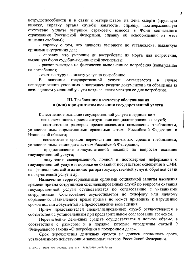 Постановление Правительства Ивановской области от 02.06.2010 N 182-п "Об утверждении стандартов качества государственных услуг Ивановской области в сфере социальной защиты населения" (вместе со "Стандартом качества государственной услуги Ивановской области "Организация предоставления компенсационных выплат гражданам, которым причинен ущерб на финансовом и фондовом рынках Ивановской области", "Стандартом качества государственной услуги "Организация дополнительного пенсионного обеспечения отдельных категорий граждан", "Стандартом качества государственной услуги Ивановской области "Погребение отдельных категорий умерших (которые не работали и не являлись пенсионерами, а также детей, родившихся мертвыми по истечении 196 дней беременности) при отсутствии лиц, взявших на себя обязательства по погребению", "Стандартом качества государственной услуги Ивановской области "Организация социальной работы с семьями и детьми", "Стандартом качества государственной услуги Ивановской области "Содержание, воспитание и начальное профессиональное образование инвалидов и лиц, страдающих хроническими формами заболеваний, в стационарных и полустационарных условиях", "Стандартом качества государственной услуги Ивановской области "Адресная социальная помощь отдельным категориям граждан", "Стандартом качества государственной услуги Ивановской области "Социальное обслуживание граждан пожилого возраста, инвалидов и детей, страдающих хроническими формами заболеваний, в стационарных и полустационарных условиях", "Стандартом качества государственной услуги Ивановской области "Социальное обслуживание лиц без определенного места жительства и занятий в стационарных и полустационарных условиях", "Стандартом качества государственной услуги Ивановской области "Социальное обслуживание граждан пожилого возраста и инвалидов на дому", "Стандартом качества государственной услуги Ивановской области "Временное содержание и социальная реабилитация несовершеннолетних, находящихся в трудной жизненной ситуации", "Стандартом качества государственной услуги Ивановской области "Выдача социальной карты жителя Ивановской области", "Стандартом качества государственной услуги Ивановской области "Организация социальной поддержки отдельных категорий граждан в форме социальных выплат, компенсаций и субсидий", "Стандартом качества государственной услуги Ивановской области "Организация денежных выплат при всех формах устройства в семью детей-сирот и детей, оставшихся без попечения родителей", "Стандартом качества государственной услуги Ивановской области "Оформление и выдача удостоверений гражданам, пострадавшим от радиационного воздействия", "Стандартом качества государственной услуги Ивановской области "Содержание, воспитание и общее образование детей-сирот, детей, оставшихся без попечения родителей, и временное (до одного года) содержание, воспитание и общее образование детей одиноких матерей (отцов), а также детей безработных, беженцев, вынужденных переселенцев, а также из семей, пострадавших от стихийных бедствий и не имеющих постоянного места жительства, в условиях круглосуточного стационара", "Стандартом качества государственной услуги Ивановской области "Назначение опекуна (попечителя) совершеннолетним гражданам, нуждающимся в о