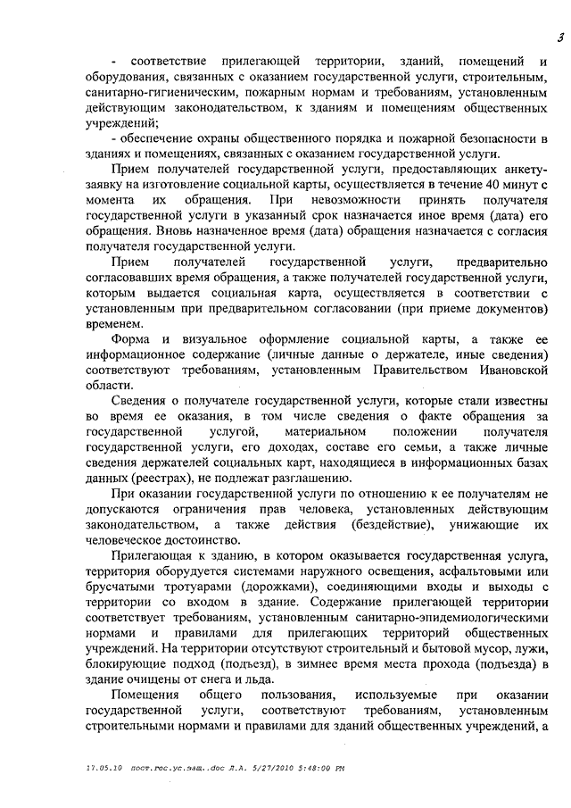Постановление Правительства Ивановской области от 02.06.2010 N 182-п "Об утверждении стандартов качества государственных услуг Ивановской области в сфере социальной защиты населения" (вместе со "Стандартом качества государственной услуги Ивановской области "Организация предоставления компенсационных выплат гражданам, которым причинен ущерб на финансовом и фондовом рынках Ивановской области", "Стандартом качества государственной услуги "Организация дополнительного пенсионного обеспечения отдельных категорий граждан", "Стандартом качества государственной услуги Ивановской области "Погребение отдельных категорий умерших (которые не работали и не являлись пенсионерами, а также детей, родившихся мертвыми по истечении 196 дней беременности) при отсутствии лиц, взявших на себя обязательства по погребению", "Стандартом качества государственной услуги Ивановской области "Организация социальной работы с семьями и детьми", "Стандартом качества государственной услуги Ивановской области "Содержание, воспитание и начальное профессиональное образование инвалидов и лиц, страдающих хроническими формами заболеваний, в стационарных и полустационарных условиях", "Стандартом качества государственной услуги Ивановской области "Адресная социальная помощь отдельным категориям граждан", "Стандартом качества государственной услуги Ивановской области "Социальное обслуживание граждан пожилого возраста, инвалидов и детей, страдающих хроническими формами заболеваний, в стационарных и полустационарных условиях", "Стандартом качества государственной услуги Ивановской области "Социальное обслуживание лиц без определенного места жительства и занятий в стационарных и полустационарных условиях", "Стандартом качества государственной услуги Ивановской области "Социальное обслуживание граждан пожилого возраста и инвалидов на дому", "Стандартом качества государственной услуги Ивановской области "Временное содержание и социальная реабилитация несовершеннолетних, находящихся в трудной жизненной ситуации", "Стандартом качества государственной услуги Ивановской области "Выдача социальной карты жителя Ивановской области", "Стандартом качества государственной услуги Ивановской области "Организация социальной поддержки отдельных категорий граждан в форме социальных выплат, компенсаций и субсидий", "Стандартом качества государственной услуги Ивановской области "Организация денежных выплат при всех формах устройства в семью детей-сирот и детей, оставшихся без попечения родителей", "Стандартом качества государственной услуги Ивановской области "Оформление и выдача удостоверений гражданам, пострадавшим от радиационного воздействия", "Стандартом качества государственной услуги Ивановской области "Содержание, воспитание и общее образование детей-сирот, детей, оставшихся без попечения родителей, и временное (до одного года) содержание, воспитание и общее образование детей одиноких матерей (отцов), а также детей безработных, беженцев, вынужденных переселенцев, а также из семей, пострадавших от стихийных бедствий и не имеющих постоянного места жительства, в условиях круглосуточного стационара", "Стандартом качества государственной услуги Ивановской области "Назначение опекуна (попечителя) совершеннолетним гражданам, нуждающимся в о