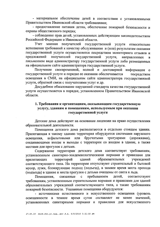 Постановление Правительства Ивановской области от 02.06.2010 N 182-п "Об утверждении стандартов качества государственных услуг Ивановской области в сфере социальной защиты населения" (вместе со "Стандартом качества государственной услуги Ивановской области "Организация предоставления компенсационных выплат гражданам, которым причинен ущерб на финансовом и фондовом рынках Ивановской области", "Стандартом качества государственной услуги "Организация дополнительного пенсионного обеспечения отдельных категорий граждан", "Стандартом качества государственной услуги Ивановской области "Погребение отдельных категорий умерших (которые не работали и не являлись пенсионерами, а также детей, родившихся мертвыми по истечении 196 дней беременности) при отсутствии лиц, взявших на себя обязательства по погребению", "Стандартом качества государственной услуги Ивановской области "Организация социальной работы с семьями и детьми", "Стандартом качества государственной услуги Ивановской области "Содержание, воспитание и начальное профессиональное образование инвалидов и лиц, страдающих хроническими формами заболеваний, в стационарных и полустационарных условиях", "Стандартом качества государственной услуги Ивановской области "Адресная социальная помощь отдельным категориям граждан", "Стандартом качества государственной услуги Ивановской области "Социальное обслуживание граждан пожилого возраста, инвалидов и детей, страдающих хроническими формами заболеваний, в стационарных и полустационарных условиях", "Стандартом качества государственной услуги Ивановской области "Социальное обслуживание лиц без определенного места жительства и занятий в стационарных и полустационарных условиях", "Стандартом качества государственной услуги Ивановской области "Социальное обслуживание граждан пожилого возраста и инвалидов на дому", "Стандартом качества государственной услуги Ивановской области "Временное содержание и социальная реабилитация несовершеннолетних, находящихся в трудной жизненной ситуации", "Стандартом качества государственной услуги Ивановской области "Выдача социальной карты жителя Ивановской области", "Стандартом качества государственной услуги Ивановской области "Организация социальной поддержки отдельных категорий граждан в форме социальных выплат, компенсаций и субсидий", "Стандартом качества государственной услуги Ивановской области "Организация денежных выплат при всех формах устройства в семью детей-сирот и детей, оставшихся без попечения родителей", "Стандартом качества государственной услуги Ивановской области "Оформление и выдача удостоверений гражданам, пострадавшим от радиационного воздействия", "Стандартом качества государственной услуги Ивановской области "Содержание, воспитание и общее образование детей-сирот, детей, оставшихся без попечения родителей, и временное (до одного года) содержание, воспитание и общее образование детей одиноких матерей (отцов), а также детей безработных, беженцев, вынужденных переселенцев, а также из семей, пострадавших от стихийных бедствий и не имеющих постоянного места жительства, в условиях круглосуточного стационара", "Стандартом качества государственной услуги Ивановской области "Назначение опекуна (попечителя) совершеннолетним гражданам, нуждающимся в о