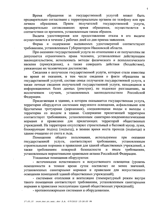 Постановление Правительства Ивановской области от 02.06.2010 N 182-п "Об утверждении стандартов качества государственных услуг Ивановской области в сфере социальной защиты населения" (вместе со "Стандартом качества государственной услуги Ивановской области "Организация предоставления компенсационных выплат гражданам, которым причинен ущерб на финансовом и фондовом рынках Ивановской области", "Стандартом качества государственной услуги "Организация дополнительного пенсионного обеспечения отдельных категорий граждан", "Стандартом качества государственной услуги Ивановской области "Погребение отдельных категорий умерших (которые не работали и не являлись пенсионерами, а также детей, родившихся мертвыми по истечении 196 дней беременности) при отсутствии лиц, взявших на себя обязательства по погребению", "Стандартом качества государственной услуги Ивановской области "Организация социальной работы с семьями и детьми", "Стандартом качества государственной услуги Ивановской области "Содержание, воспитание и начальное профессиональное образование инвалидов и лиц, страдающих хроническими формами заболеваний, в стационарных и полустационарных условиях", "Стандартом качества государственной услуги Ивановской области "Адресная социальная помощь отдельным категориям граждан", "Стандартом качества государственной услуги Ивановской области "Социальное обслуживание граждан пожилого возраста, инвалидов и детей, страдающих хроническими формами заболеваний, в стационарных и полустационарных условиях", "Стандартом качества государственной услуги Ивановской области "Социальное обслуживание лиц без определенного места жительства и занятий в стационарных и полустационарных условиях", "Стандартом качества государственной услуги Ивановской области "Социальное обслуживание граждан пожилого возраста и инвалидов на дому", "Стандартом качества государственной услуги Ивановской области "Временное содержание и социальная реабилитация несовершеннолетних, находящихся в трудной жизненной ситуации", "Стандартом качества государственной услуги Ивановской области "Выдача социальной карты жителя Ивановской области", "Стандартом качества государственной услуги Ивановской области "Организация социальной поддержки отдельных категорий граждан в форме социальных выплат, компенсаций и субсидий", "Стандартом качества государственной услуги Ивановской области "Организация денежных выплат при всех формах устройства в семью детей-сирот и детей, оставшихся без попечения родителей", "Стандартом качества государственной услуги Ивановской области "Оформление и выдача удостоверений гражданам, пострадавшим от радиационного воздействия", "Стандартом качества государственной услуги Ивановской области "Содержание, воспитание и общее образование детей-сирот, детей, оставшихся без попечения родителей, и временное (до одного года) содержание, воспитание и общее образование детей одиноких матерей (отцов), а также детей безработных, беженцев, вынужденных переселенцев, а также из семей, пострадавших от стихийных бедствий и не имеющих постоянного места жительства, в условиях круглосуточного стационара", "Стандартом качества государственной услуги Ивановской области "Назначение опекуна (попечителя) совершеннолетним гражданам, нуждающимся в о