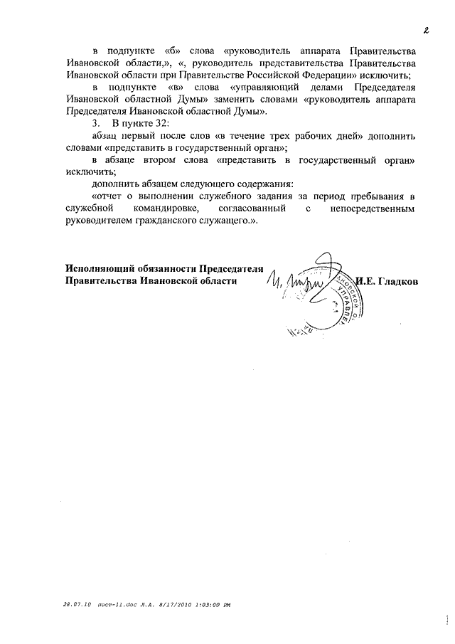 Постановление Правительства Ивановской области от 17.08.2010 N 293-п "О внесении изменений в постановление Правительства Ивановской области от 27.01.2009 N 11-п "Об утверждении Положения о порядке и условиях командирования государственных гражданских служащих Ивановской области и возмещения им расходов, связанных со служебными командировками на территории Российской Федерации и иностранных государств"