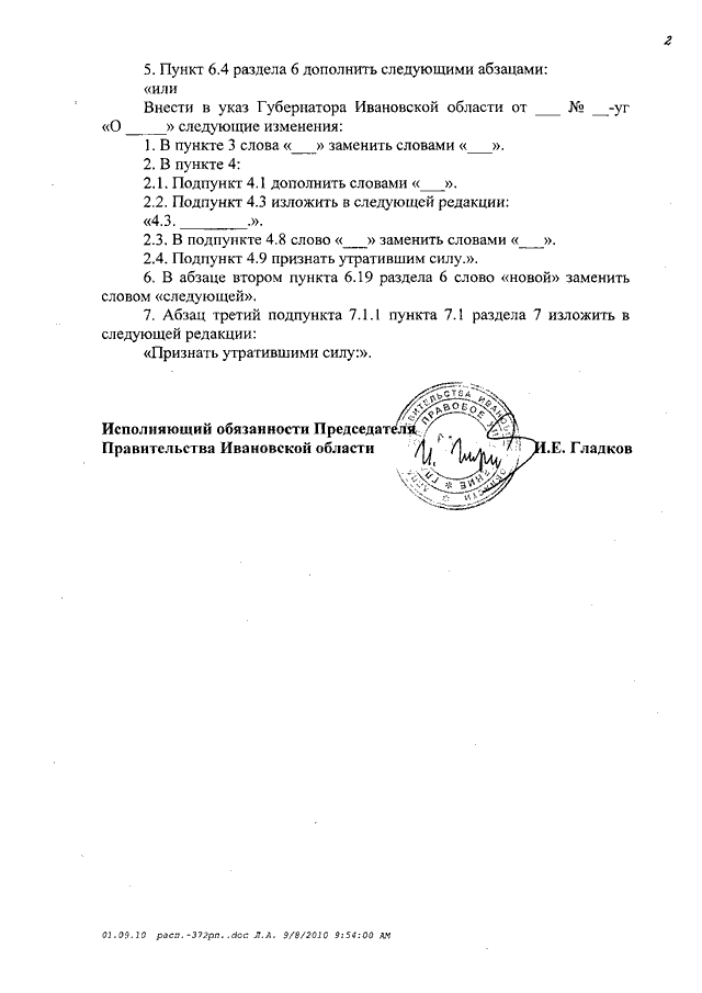 Распоряжение Правительства Ивановской области от 10.09.2010 N 315-рп "О внесении изменений в распоряжение Правительства Ивановской области от 09.12.2009 N 372-рп "Об утверждении Правил оформления проектов правовых актов Ивановской области"