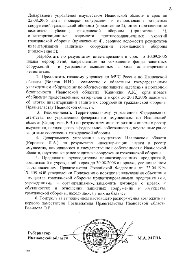 Распоряжение Правительства Ивановской области от 13.07.2006 N 152-рп "Об организации проведения инвентаризации защитных сооружений гражданской обороны Ивановской области" (вместе с "Методическими рекомендациями по проведению инвентаризации защитных сооружений гражданской обороны на территории Ивановской области")