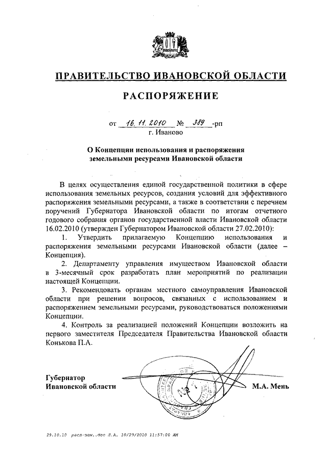 Распоряжение Правительства Ивановской области от 16.11.2010 N 389-рп "О Концепции использования и распоряжения земельными ресурсами Ивановской области"