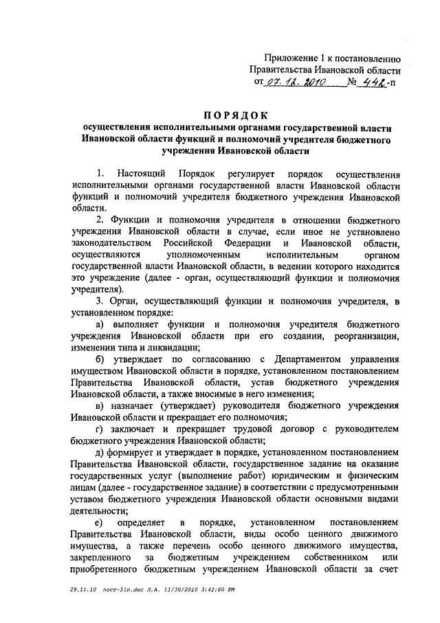 Постановление Правительства Ивановской области от 07.12.2010 N 442-п "О порядках осуществления исполнительными органами государственной власти Ивановской области функций и полномочий учредителя бюджетных и казенных учреждений Ивановской области и о внесении изменений в постановление Правительства Ивановской области от 02.04.2008 N 51-п "Об утверждении Порядка осуществления исполнительными органами государственной власти Ивановской области функций и полномочий учредителя автономного учреждения Ивановской области"