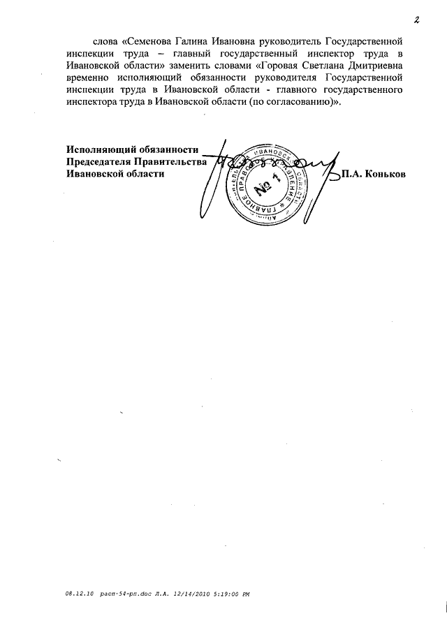 Распоряжение Правительства Ивановской области от 15.12.2010 N 426-рп "О внесении изменений в распоряжение Правительства Ивановской области от 12.04.2006 N 54-рп "Об утверждении состава межведомственной комиссии по соблюдению требований законодательства в вопросах оплаты труда в организациях Ивановской области"