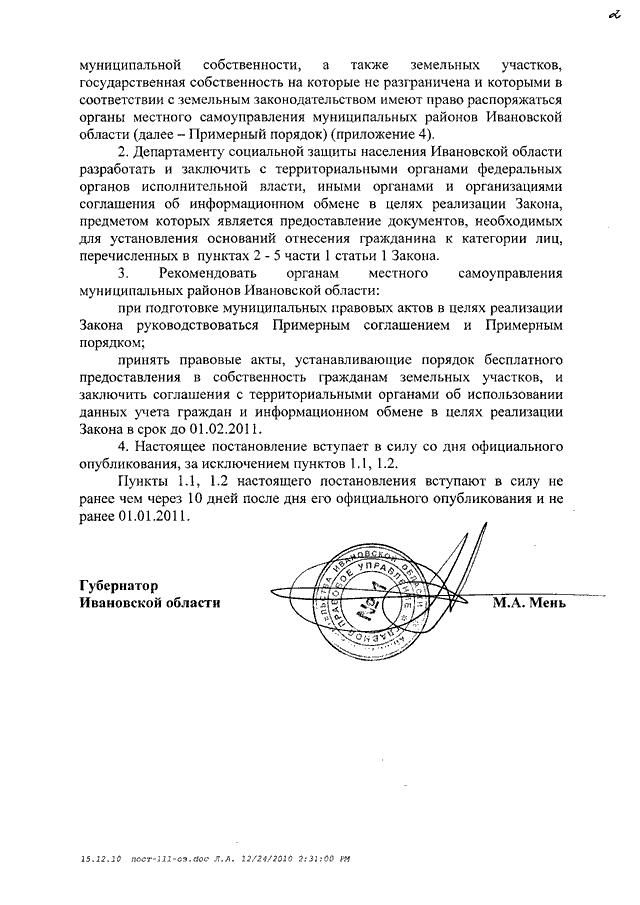 Постановление Правительства Ивановской области от 29.12.2010 N 487-п "О мерах по реализации Закона Ивановской области от 31.12.2002 N 111-ОЗ "О бесплатном предоставлении земельных участков в собственность гражданам Российской Федерации" (вместе с "Порядком учета граждан, имеющих право на бесплатное предоставление в собственность земельных участков", "Порядком бесплатного предоставления в собственность гражданам земельных участков, находящихся в собственности Ивановской области")