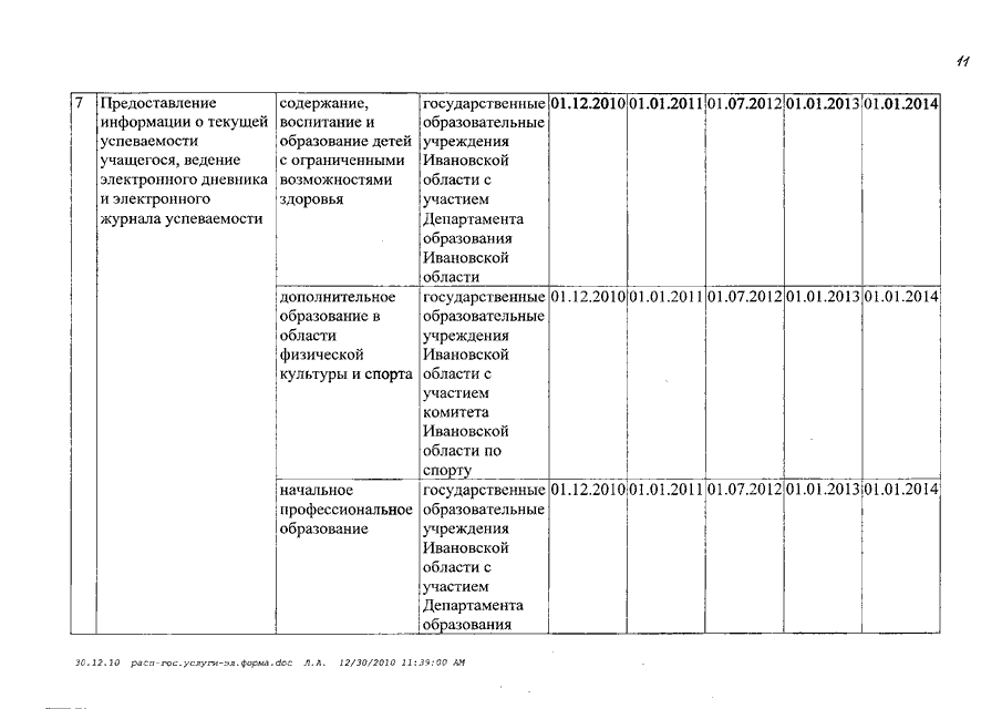 Распоряжение Правительства Ивановской области от 12.01.2011 N 1-рп "Об утверждении плана-графика перехода на предоставление государственных услуг в электронной форме исполнительными органами государственной власти и государственными учреждениями Ивановской области"