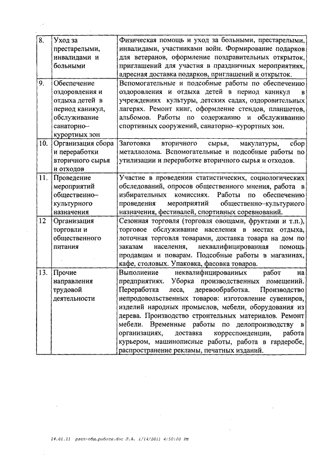 Распоряжение Правительства Ивановской области от 27.01.2011 N 10-рп "Об утверждении перечня видов общественных работ, организуемых в Ивановской области в 2011 году"