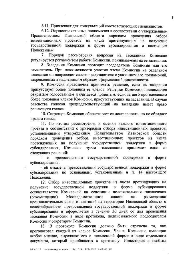 Постановление Правительства Ивановской области от 02.02.2011 N 15-п "О создании конкурсной комиссии по отбору инвестиционных проектов из числа претендующих на получение государственной поддержки в форме возмещения (субсидирования) за счет средств областного бюджета части затрат на уплату процентов по кредитам, привлекаемым на инвестиционные цели в российских кредитных организациях" (вместе с "Положением о конкурсной комиссии по отбору инвестиционных проектов из числа претендующих на получение государственной поддержки в форме возмещения (субсидирования) за счет средств областного бюджета части затрат на уплату процентов по кредитам, привлекаемым на инвестиционные цели в российских кредитных организациях")