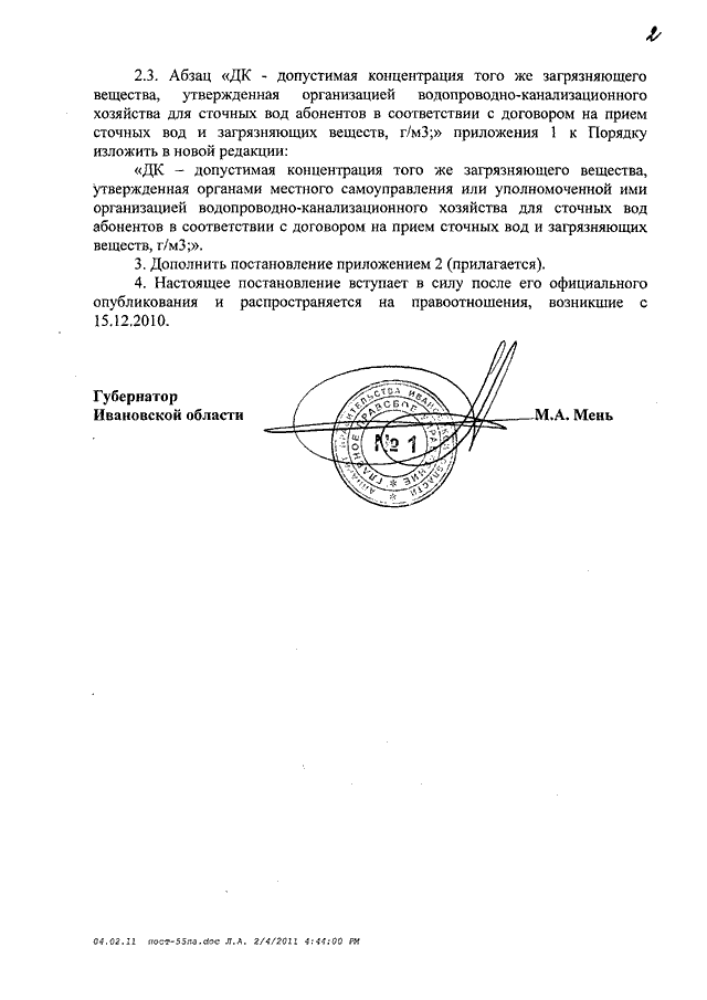 Постановление Правительства Ивановской области от 09.02.2011 N 20-п "О внесении изменений в постановление администрации Ивановской области от 04.06.2002 N 55-па "Об утверждении Порядка взимания платы за сброс сточных вод и загрязняющих веществ в системы канализации населенных пунктов Ивановской области" (вместе с "Методикой по установлению нормативов водоотведения по качеству сточных вод абонентов")