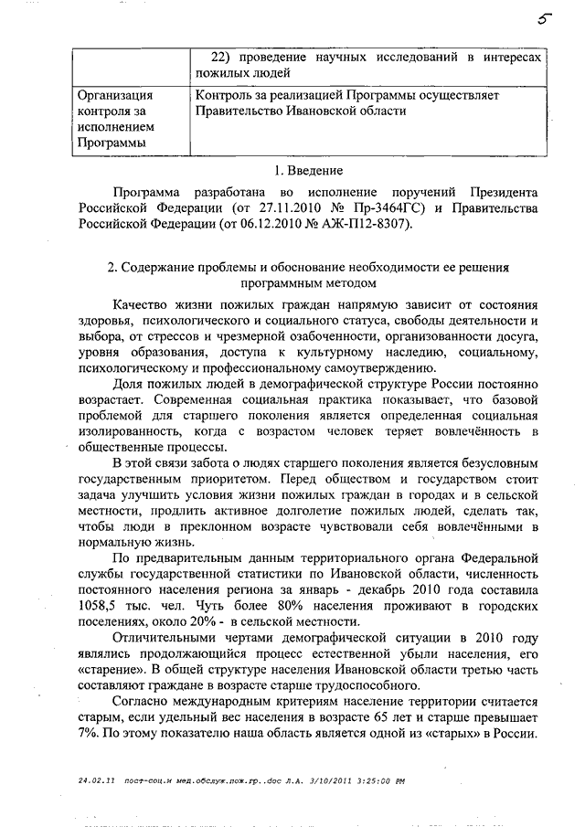 Постановление Правительства Ивановской области от 14.03.2011 N 53-п "О мерах по повышению качества социального и медицинского обслуживания пожилых людей" (вместе с "Программой Ивановской области "Повышение качества жизни граждан пожилого возраста" на 2011 - 2013 годы")