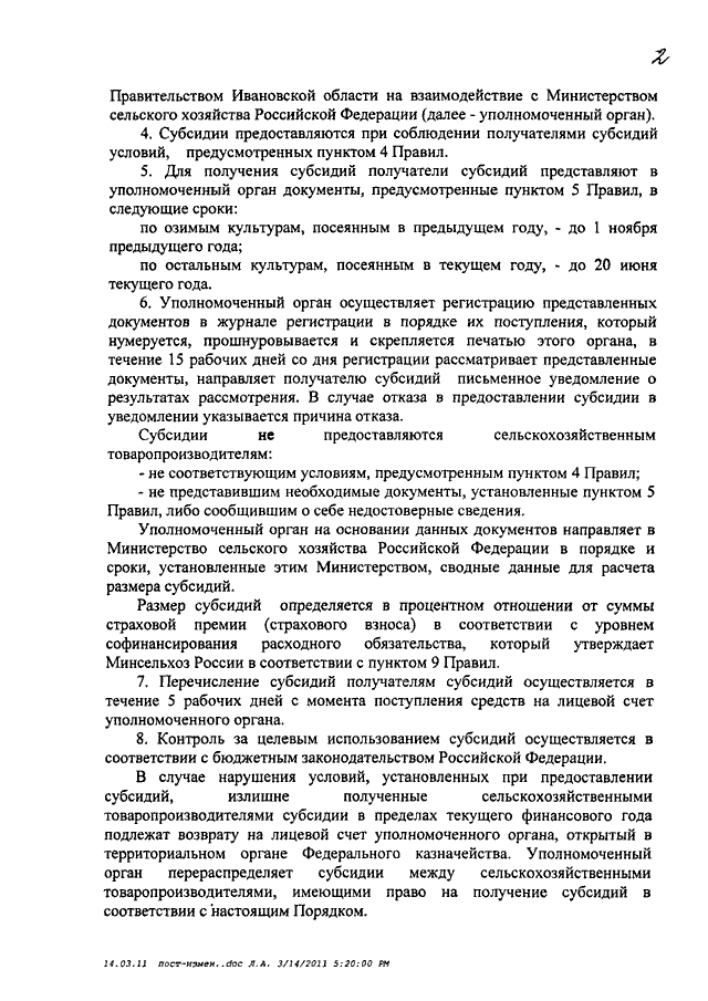 Постановление Правительства Ивановской области от 15.03.2011 N 63-п "О внесении изменений в некоторые постановления Правительства Ивановской области" (вместе с "Порядком предоставления субсидий на поддержку отдельных подотраслей растениеводства, источником финансового обеспечения которых является субсидия из федерального бюджета", "Порядком предоставления субсидий на компенсацию части затрат по страхованию урожая сельскохозяйственных культур, урожая многолетних насаждений и посадок многолетних насаждений, источником финансового обеспечения которых является субсидия из федерального бюджета")