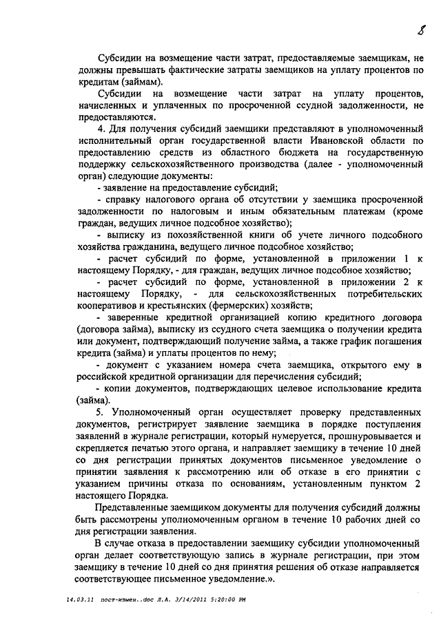 Постановление Правительства Ивановской области от 15.03.2011 N 63-п "О внесении изменений в некоторые постановления Правительства Ивановской области" (вместе с "Порядком предоставления субсидий на поддержку отдельных подотраслей растениеводства, источником финансового обеспечения которых является субсидия из федерального бюджета", "Порядком предоставления субсидий на компенсацию части затрат по страхованию урожая сельскохозяйственных культур, урожая многолетних насаждений и посадок многолетних насаждений, источником финансового обеспечения которых является субсидия из федерального бюджета")