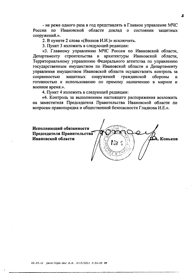 Распоряжение Правительства Ивановской области от 15.03.2011 N 65-рп "О внесении изменений в распоряжение Правительства Ивановской области от 06.04.2006 N 51-рп "О состоянии защитных сооружений на территории Ивановской области и мерах по приведению их в готовность"