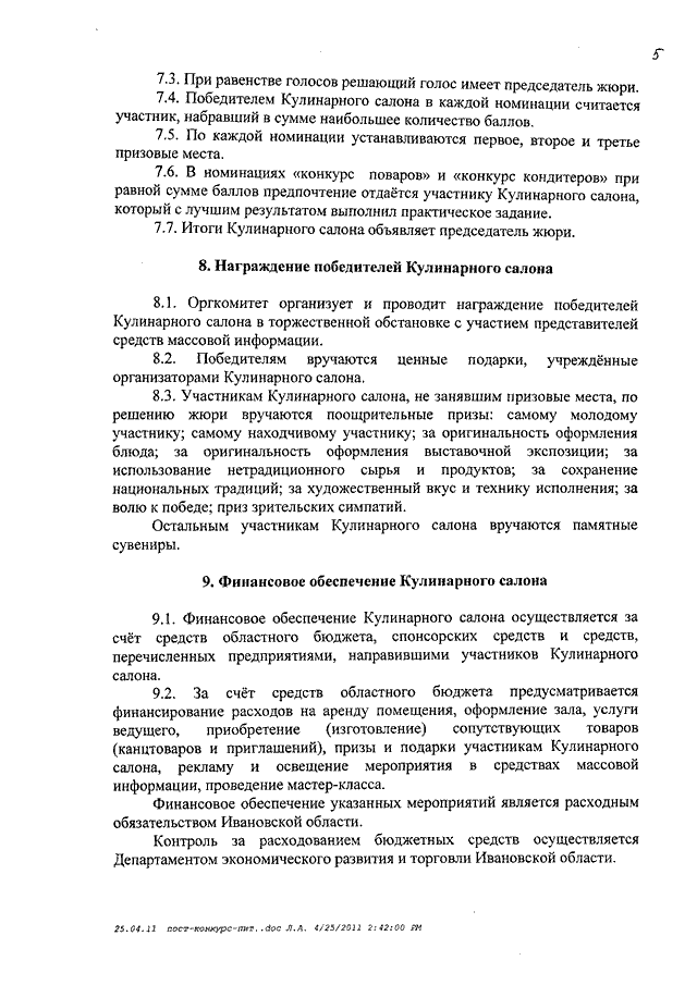 Постановление Правительства Ивановской области от 19.04.2011 N 112-п "О межрегиональном конкурсе профессионального мастерства среди работников общественного питания" (вместе с "Положением о межрегиональном конкурсе профессионального мастерства среди работников общественного питания")