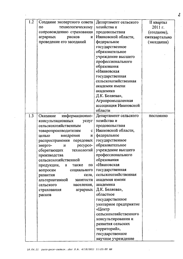 Распоряжение Правительства Ивановской области от 04.05.2011 N 119-рп "О комплексе мероприятий по эффективному управлению рисками в сельском хозяйстве региона" (вместе с "Планом мероприятий по эффективному управлению рисками в сельском хозяйстве Ивановской области")