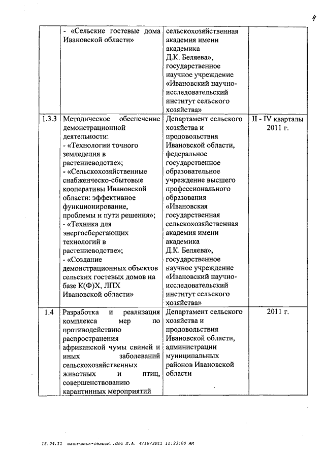 Распоряжение Правительства Ивановской области от 04.05.2011 N 119-рп "О комплексе мероприятий по эффективному управлению рисками в сельском хозяйстве региона" (вместе с "Планом мероприятий по эффективному управлению рисками в сельском хозяйстве Ивановской области")