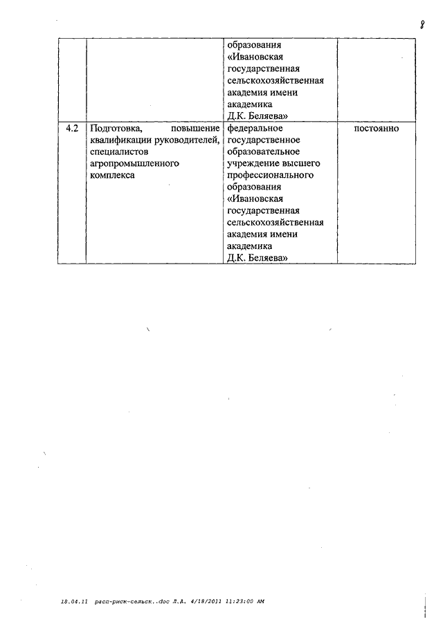 Распоряжение Правительства Ивановской области от 04.05.2011 N 119-рп "О комплексе мероприятий по эффективному управлению рисками в сельском хозяйстве региона" (вместе с "Планом мероприятий по эффективному управлению рисками в сельском хозяйстве Ивановской области")