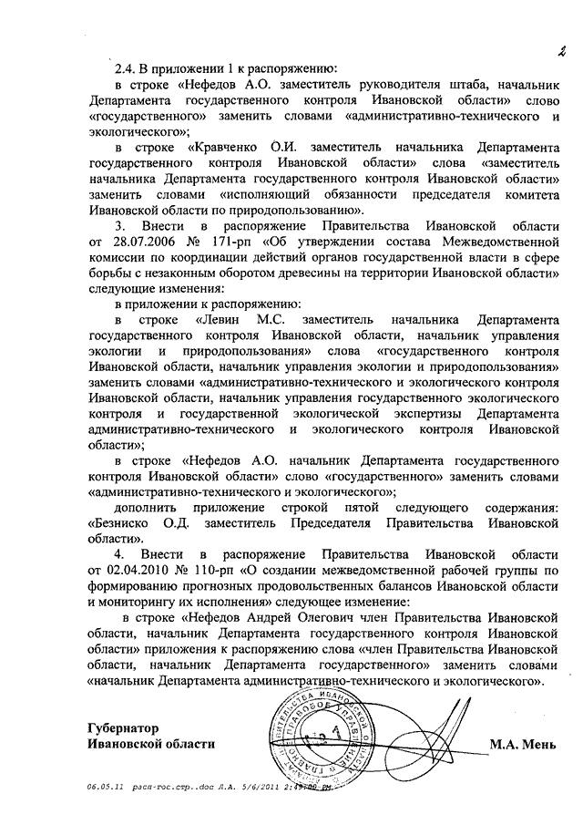 Распоряжение Правительства Ивановской области от 12.05.2011 N 131-рп "О внесении изменений в некоторые распоряжения Правительства Ивановской области в связи с изменением структуры и полномочий Департамента государственного контроля Ивановской области"