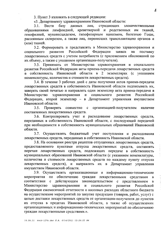Постановление Правительства Ивановской области от 23.06.2011 N 224-п "О внесении изменений в постановление Правительства Ивановской области от 28.05.2008 N 129-п "Об организации обеспечения населения Ивановской области лекарственными средствами, предназначенными для лечения больных злокачественными новообразованиями лимфоидной, кроветворной и родственных им тканей, гемофилией, муковисцидозом, гипофизарным нанизмом, болезнью Гоше, рассеянным склерозом, а также после трансплантации органов и (или) тканей, закупленными в 2010 году"