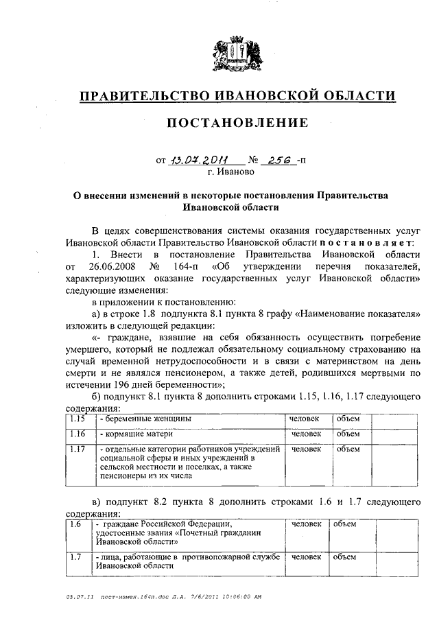 Постановление Правительства Ивановской области от 13.07.2011 N 256-п "О внесении изменений в некоторые постановления Правительства Ивановской области"
