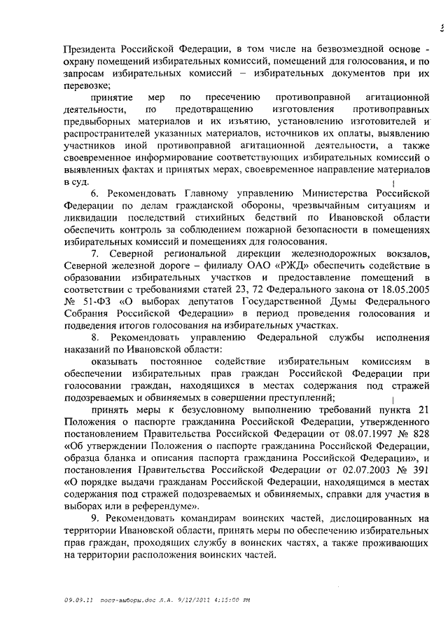 Постановление Правительства Ивановской области от 13.09.2011 N 325-п "О мерах по оказанию содействия избирательным комиссиям в реализации их полномочий при подготовке и проведении выборов депутатов Государственной Думы Федерального Собрания Российской Федерации шестого созыва и выборов Президента Российской Федерации"