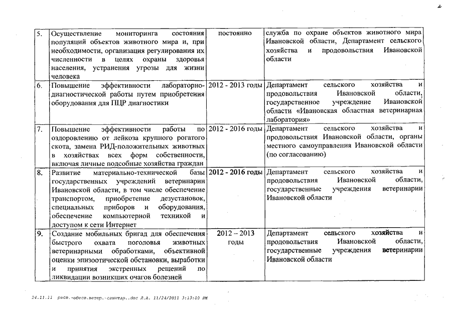 Распоряжение Правительства Ивановской области от 02.12.2011 N 329-рп "О мерах по обеспечению эпизоотического и ветеринарно-санитарного благополучия на территории Ивановской области" (вместе с "Планом мероприятий по обеспечению эпизоотического и ветеринарно-санитарного благополучия на территории Ивановской области на 2012 - 2016 годы")