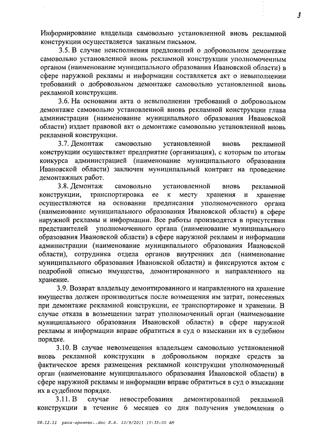 Распоряжение Правительства Ивановской области от 14.12.2011 N 347-рп "О мерах по формированию благоприятной архитектурной и информационной среды на территории Ивановской области" (вместе с "Примерным положением об установке и эксплуатации рекламных конструкций на территории муниципальных образований Ивановской области", "Примерным положением о порядке организации и проведения торгов на право заключения договора на установку и эксплуатацию рекламной конструкции на земельном участке, здании и ином недвижимом имуществе, находящемся в собственности муниципальных образований Ивановской области", "Примерным порядком расчета размера оплаты по договорам на установку и эксплуатацию рекламных конструкций на земельном участке, здании или ином недвижимом имуществе, находящемся в собственности или ведении муниципальных образований Ивановской области", "Примерным положением об установке информационных конструкций на территории муниципальных образований Ивановской области")