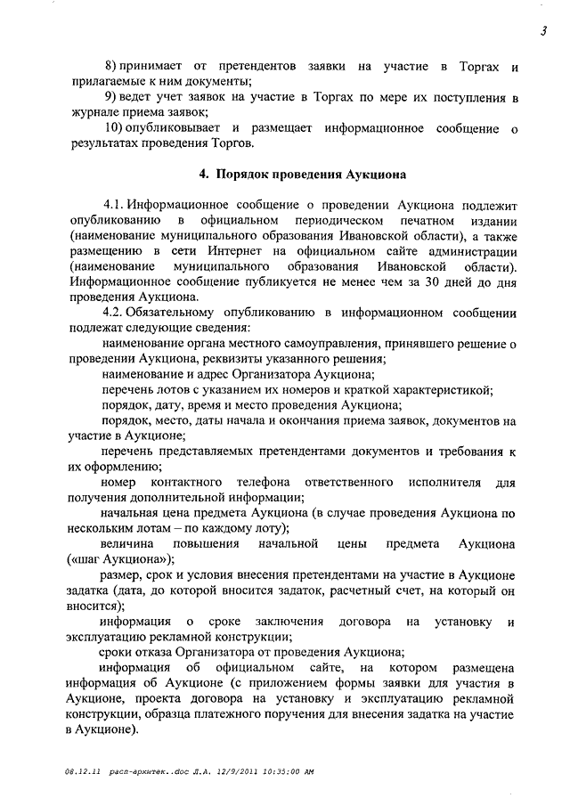 Распоряжение Правительства Ивановской области от 14.12.2011 N 347-рп "О мерах по формированию благоприятной архитектурной и информационной среды на территории Ивановской области" (вместе с "Примерным положением об установке и эксплуатации рекламных конструкций на территории муниципальных образований Ивановской области", "Примерным положением о порядке организации и проведения торгов на право заключения договора на установку и эксплуатацию рекламной конструкции на земельном участке, здании и ином недвижимом имуществе, находящемся в собственности муниципальных образований Ивановской области", "Примерным порядком расчета размера оплаты по договорам на установку и эксплуатацию рекламных конструкций на земельном участке, здании или ином недвижимом имуществе, находящемся в собственности или ведении муниципальных образований Ивановской области", "Примерным положением об установке информационных конструкций на территории муниципальных образований Ивановской области")