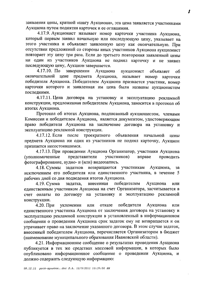 Распоряжение Правительства Ивановской области от 14.12.2011 N 347-рп "О мерах по формированию благоприятной архитектурной и информационной среды на территории Ивановской области" (вместе с "Примерным положением об установке и эксплуатации рекламных конструкций на территории муниципальных образований Ивановской области", "Примерным положением о порядке организации и проведения торгов на право заключения договора на установку и эксплуатацию рекламной конструкции на земельном участке, здании и ином недвижимом имуществе, находящемся в собственности муниципальных образований Ивановской области", "Примерным порядком расчета размера оплаты по договорам на установку и эксплуатацию рекламных конструкций на земельном участке, здании или ином недвижимом имуществе, находящемся в собственности или ведении муниципальных образований Ивановской области", "Примерным положением об установке информационных конструкций на территории муниципальных образований Ивановской области")