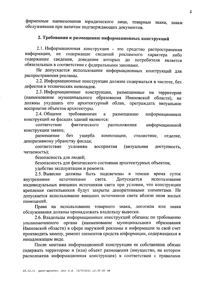 Распоряжение Правительства Ивановской области от 14.12.2011 N 347-рп "О мерах по формированию благоприятной архитектурной и информационной среды на территории Ивановской области" (вместе с "Примерным положением об установке и эксплуатации рекламных конструкций на территории муниципальных образований Ивановской области", "Примерным положением о порядке организации и проведения торгов на право заключения договора на установку и эксплуатацию рекламной конструкции на земельном участке, здании и ином недвижимом имуществе, находящемся в собственности муниципальных образований Ивановской области", "Примерным порядком расчета размера оплаты по договорам на установку и эксплуатацию рекламных конструкций на земельном участке, здании или ином недвижимом имуществе, находящемся в собственности или ведении муниципальных образований Ивановской области", "Примерным положением об установке информационных конструкций на территории муниципальных образований Ивановской области")