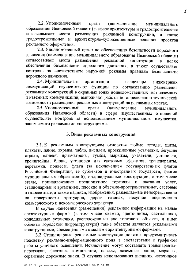 Распоряжение Правительства Ивановской области от 14.12.2011 N 347-рп "О мерах по формированию благоприятной архитектурной и информационной среды на территории Ивановской области" (вместе с "Примерным положением об установке и эксплуатации рекламных конструкций на территории муниципальных образований Ивановской области", "Примерным положением о порядке организации и проведения торгов на право заключения договора на установку и эксплуатацию рекламной конструкции на земельном участке, здании и ином недвижимом имуществе, находящемся в собственности муниципальных образований Ивановской области", "Примерным порядком расчета размера оплаты по договорам на установку и эксплуатацию рекламных конструкций на земельном участке, здании или ином недвижимом имуществе, находящемся в собственности или ведении муниципальных образований Ивановской области", "Примерным положением об установке информационных конструкций на территории муниципальных образований Ивановской области")