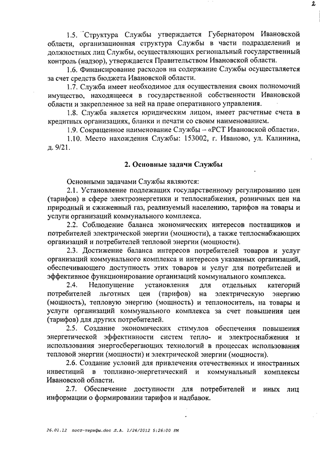 Постановление Правительства Ивановской области от 01.02.2012 N 19-п "Об утверждении Положения о Региональной службе по тарифам Ивановской области"