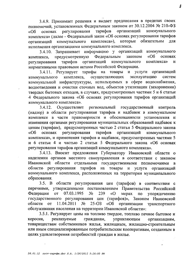Постановление Правительства Ивановской области от 01.02.2012 N 19-п "Об утверждении Положения о Региональной службе по тарифам Ивановской области"
