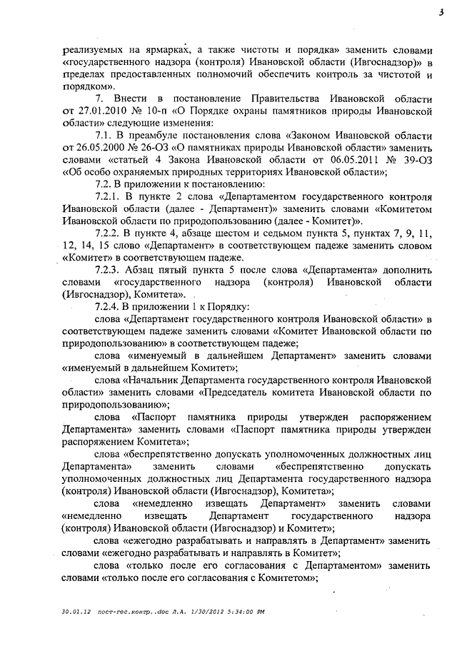 Постановление Правительства Ивановской области от 06.02.2012 N 30-п "О внесении изменений в некоторые постановления Правительства Ивановской области в связи с изменением структуры и полномочий Департамента государственного контроля Ивановской области"