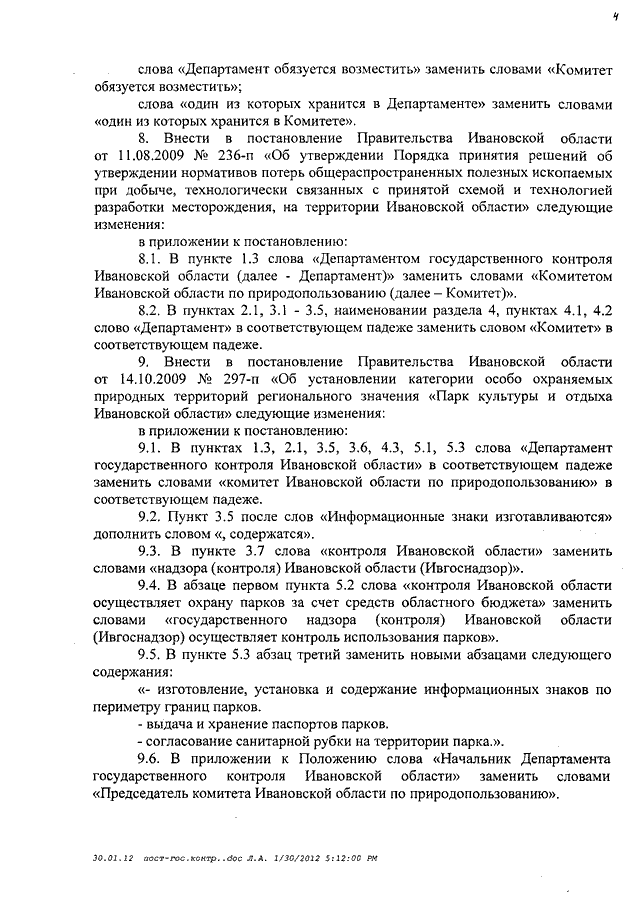 Постановление Правительства Ивановской области от 06.02.2012 N 30-п "О внесении изменений в некоторые постановления Правительства Ивановской области в связи с изменением структуры и полномочий Департамента государственного контроля Ивановской области"