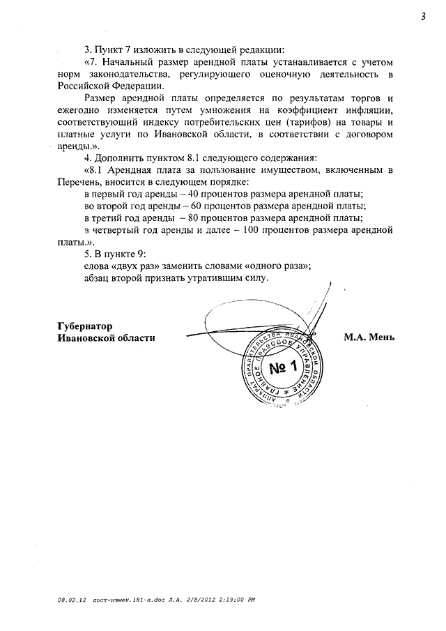 Постановление Правительства Ивановской области от 16.02.2012 N 43-п "О внесении изменений в постановление Правительства Ивановской области от 02.06.2010 N 181-п "О Порядке формирования, ведения, обязательного опубликования перечня имущества Ивановской области, свободного от прав третьих лиц (за исключением имущественных прав субъектов малого и среднего предпринимательства), предназначенного для предоставления его во владение и (или) пользование на долгосрочной основе (в том числе по льготным ставкам арендной платы для субъектов малого и среднего предпринимательства, занимающихся социально значимыми видами деятельности) субъектам малого и среднего предпринимательства и организациям, образующим инфраструктуру поддержки субъектов малого и среднего предпринимательства, а также порядке и условиях предоставления указанного имущества в аренду (в том числе по льготным ставкам арендной платы для субъектов малого и среднего предпринимательства, занимающихся социально значимыми видами деятельности) субъектам малого и среднего предпринимательства"