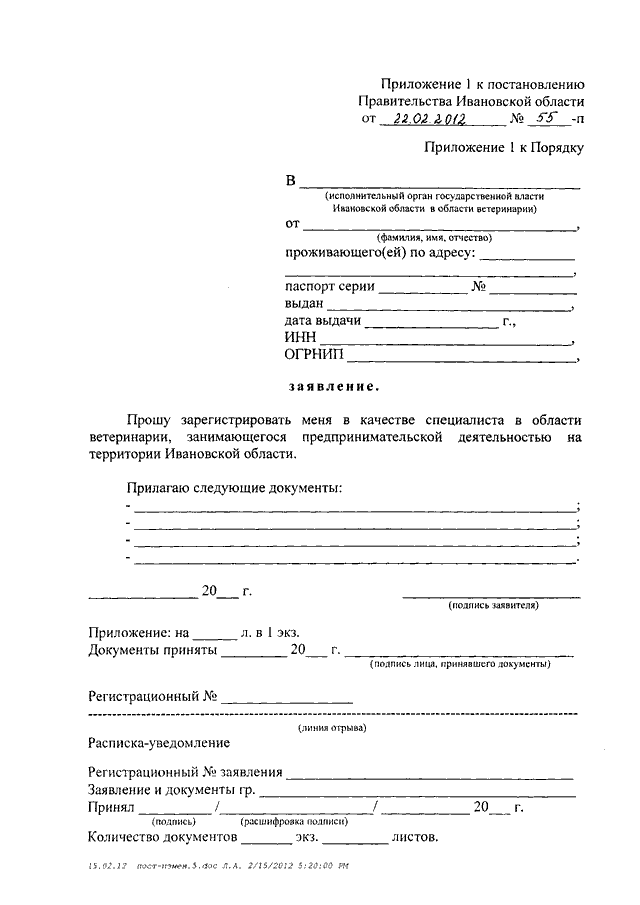 Постановление Правительства Ивановской области от 22.02.2012 N 55-п "О внесении изменений в некоторые постановления Правительства Ивановской области"